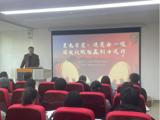 11月11日下午,我校邀请山东大学特聘教授、国家级教学名师、bbin宝盈游戏官网执行院长邢建平教授在健行楼215为我校师生举办了一场题为“星光学堂:课赛合一项目实战赋能赢创力提升”的创新创业教育专题讲座。我校师生代表100余人聆听了讲座。